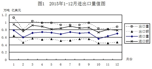 根據(jù)家有關(guān)部門統(tǒng)計(jì)的2015年我覆銅板進(jìn)出口數(shù)據(jù),如圖1和表1所示。