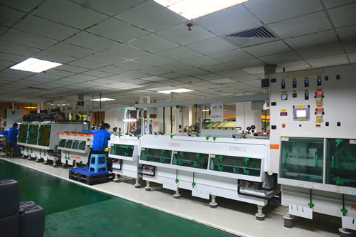 參訪團(tuán)后走訪了珠海鎮(zhèn)東有限公司。珠海鎮(zhèn)東成立于1999年1月1日,公司的核心產(chǎn)品是印制電路板制造用陶瓷刷輥、不織布刷輥、尼龍針?biāo)⑤仭⒒鹕交宜⑤仯硗膺€有光學(xué)級曝光玻璃、全系列各類刷板機(jī)系統(tǒng)(21刷/17刷/13刷/9刷/8刷/4刷/2刷/1刷<以及薄板、厚板>)、砂帶研磨機(jī)、銅粉過濾機(jī)、真空絲印機(jī)和匹配型塞孔油墨/樹脂等線路板制造用相關(guān)設(shè)備及物料, 并為廣大客戶提供真空絲印塞孔、研磨的代工服務(wù)。在珠海鎮(zhèn)東的生產(chǎn)車間內(nèi),各生產(chǎn)設(shè)備正在正常運(yùn)行,工人們有條不紊地調(diào)整著設(shè)備參數(shù)。據(jù)總經(jīng)理趙其平介紹,2016年開工大吉,訂單量穩(wěn)中有升,今后將繼續(xù)提升企業(yè)的科研實(shí)力,以優(yōu)質(zhì)的產(chǎn)品服務(wù)客戶、為客戶創(chuàng)造價值。