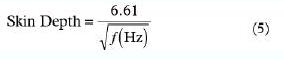 在高頻段,必須考慮一種稱為“趨膚效應”的現象。趨膚效應會引起電流流向導線的外表面——結果會使得導線的橫截面變窄,因此使直流(DC)電阻增大。雖然趨膚效應超出了本文討論的范圍,這里還是給出銅線中趨膚深度(Skin Depth)的一個很好的近似公式(以cm為單位):