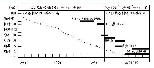隨著電子整機(jī)產(chǎn)品的高速化發(fā)展,這就要求所使用PCB的特性阻抗控制要求達(dá)到高精度化。以計(jì)算機(jī)高速化進(jìn)展為例,就可以說明這一需求的發(fā)展趨勢。