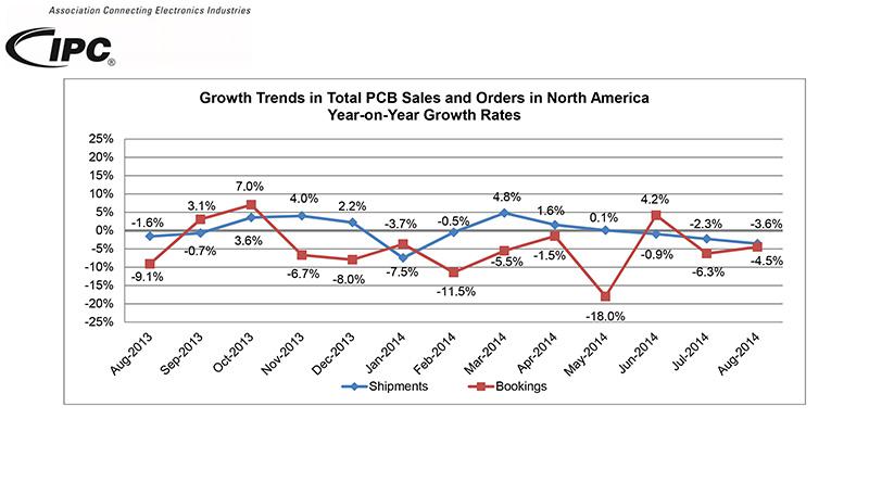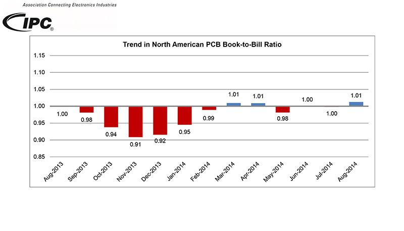014年10月20日,美伊利諾伊州班諾克本-IPC-際電子工業(yè)聯(lián)接協(xié)會(huì)?上月發(fā)布了《8月份北美地區(qū)PCB行業(yè)調(diào)研統(tǒng)計(jì)報(bào)告》。報(bào)告顯示8月份的銷售量和訂單量,均弱于去年同期水平,但是訂單出貨比有所增強(qiáng)。